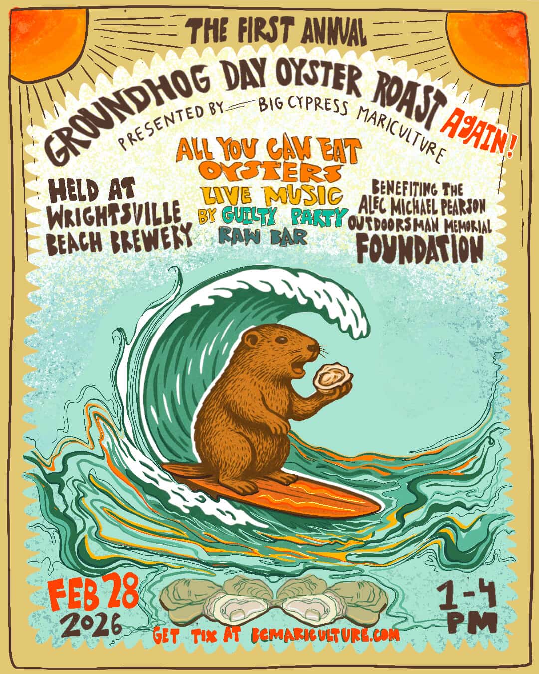![]() | Groundhog Day Oyster Roast(Sat) The Groundhog Day Oyster Roast features all-you-can-eat oysters, live music, and local beer at Wrightsville Beach Brewery. |