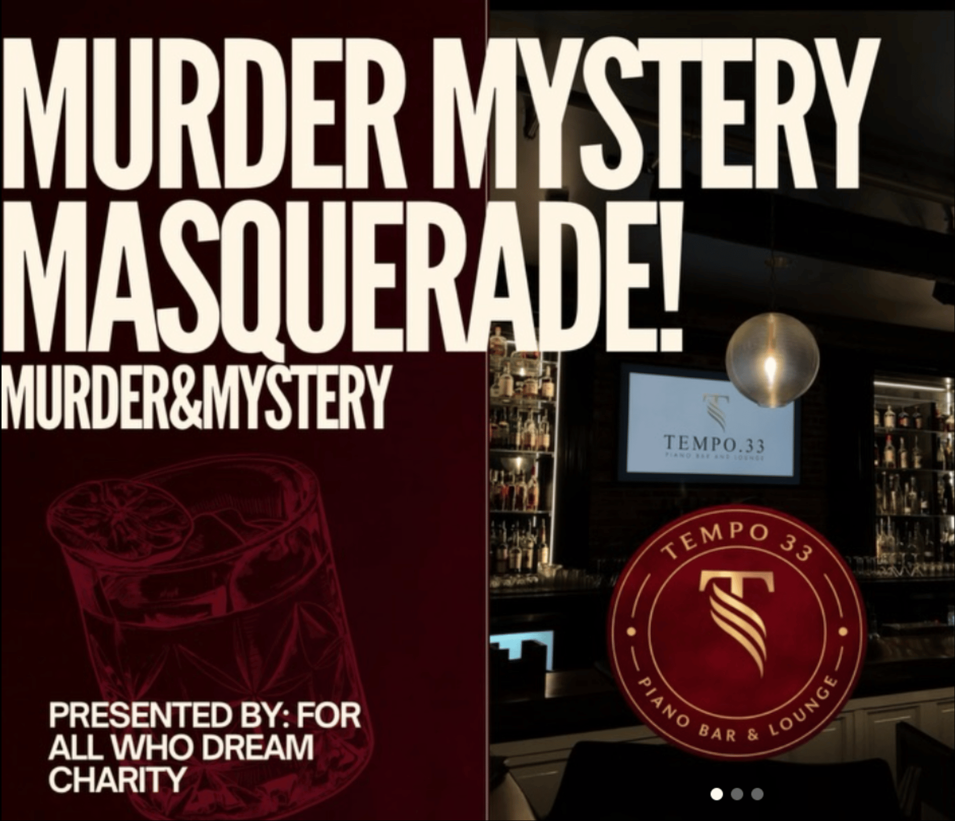 Murder Mystery Masquerade – Step into a Murder Mystery Masquerade supporting For All Who Dream at Tempo 33, with over-the-top costumes and immersive intrigue.