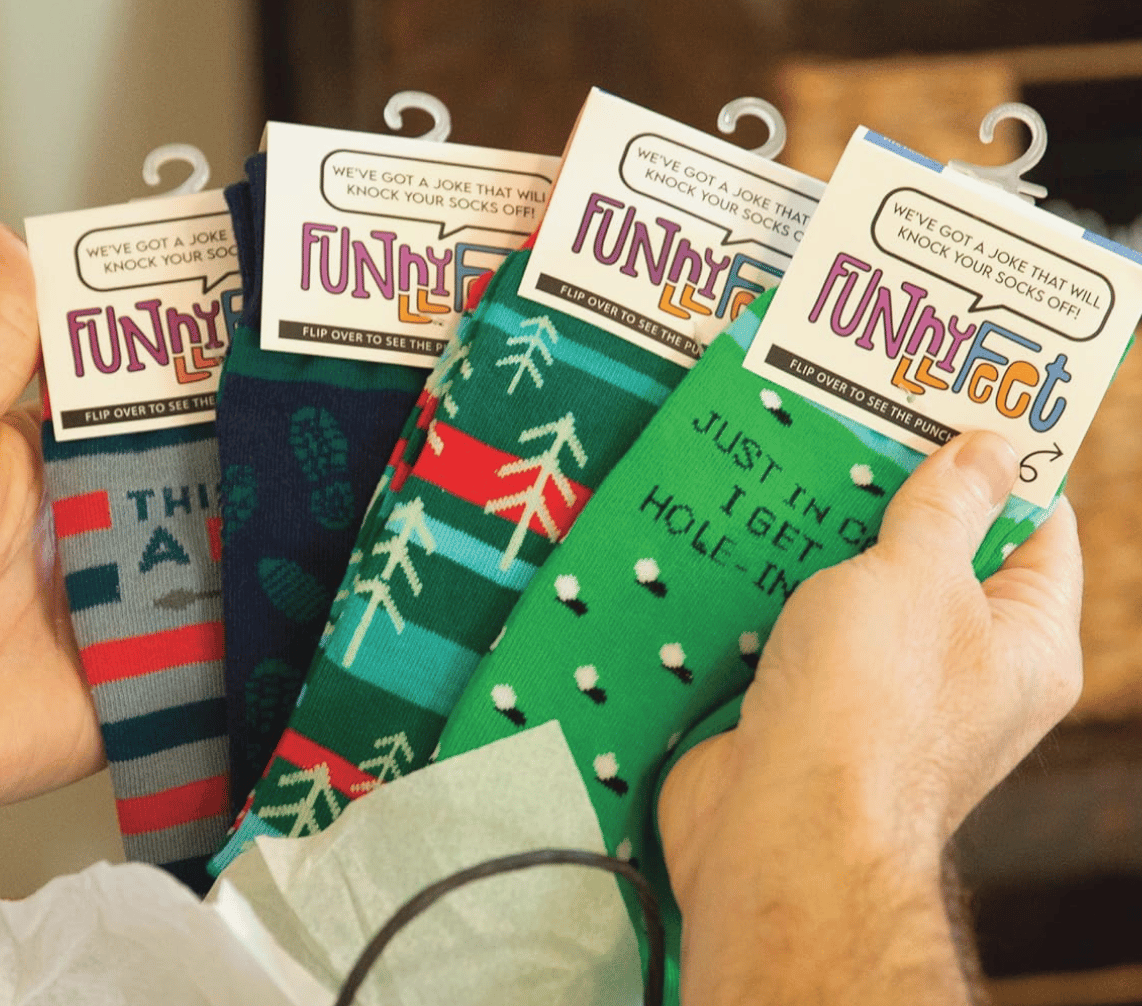 ![]() | Funny Feet Socks Local sock company featuring quirky designs and jokes. For every paid sold, they donate a pair to a homeless shelter π» Shop Online |